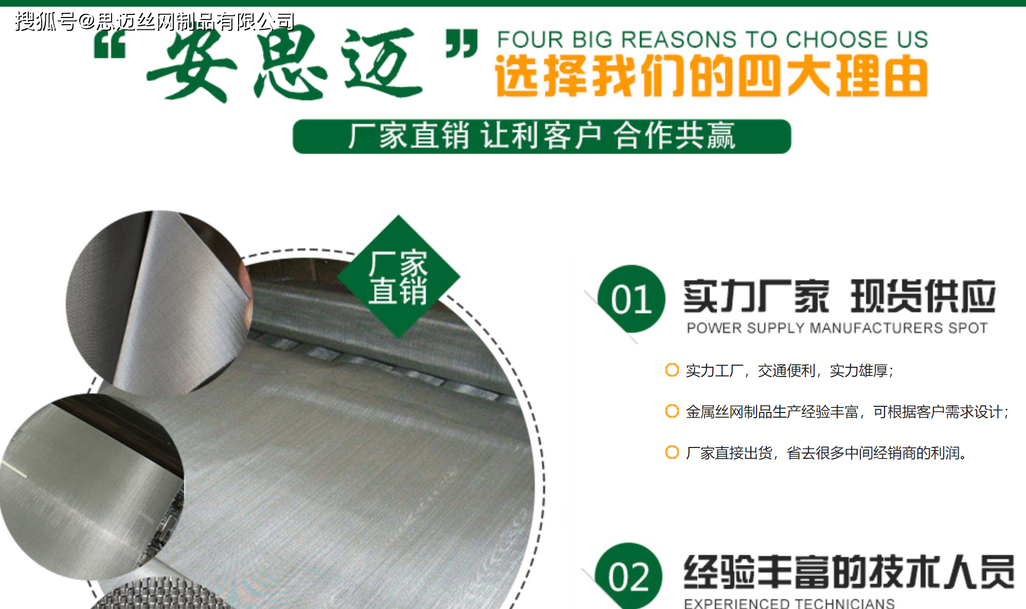 安思邁高端環(huán)保絲網產品倡導者-專注于耐高溫耐腐蝕系列絲網 ,安思邁品牌絲網是一家專門生產耐高溫金屬網系列以及耐腐蝕金屬網系列產品的廠家,安思邁始終堅持產品第一,質量第一。主要產品有鐵鉻鋁網、不銹鋼網、鎳鉻絲網、蒙乃爾絲網、英科耐爾絲網,鎳網,銅網,鈦絲鈦板網、哈氏合金絲網等稀有特殊類金屬網產品生產經驗,擁有專業(yè)的生產設備,技術力量雄厚,對生產實行規(guī)范化管理,對產品實行科學化管理,特殊規(guī)格可按樣品視圖紙制造。我們將不斷開發(fā)新產品、增加技術含量、擴大生產能力,降低生產成本、使之既能保證大批量定單的及時供貨,又可為多種小數量的客戶進行生產。在誠信雙贏的基礎上,憑借良好的企業(yè)信譽,穩(wěn)定的售中、售后服務,與更多的國內外客戶建立一種友好、愉快、長期的合作關系。